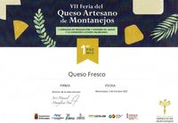Nuestro "Queso Fresco" ha sido galardonado con el 1er Premio de su categoría en la VII Feria del Queso Artesano de Montanejos, celebrada en el mes de octubre de 2022.